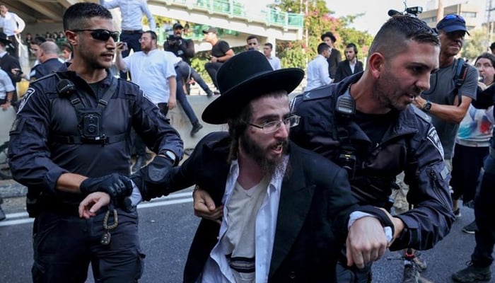 غیرملکی میڈیا کے مطابق اسرائیلی الٹرا آرتھوڈکس مدرسے کے طلبہ فوج میں لازمی شمولیت کے لیے مستثنیٰ تھے۔