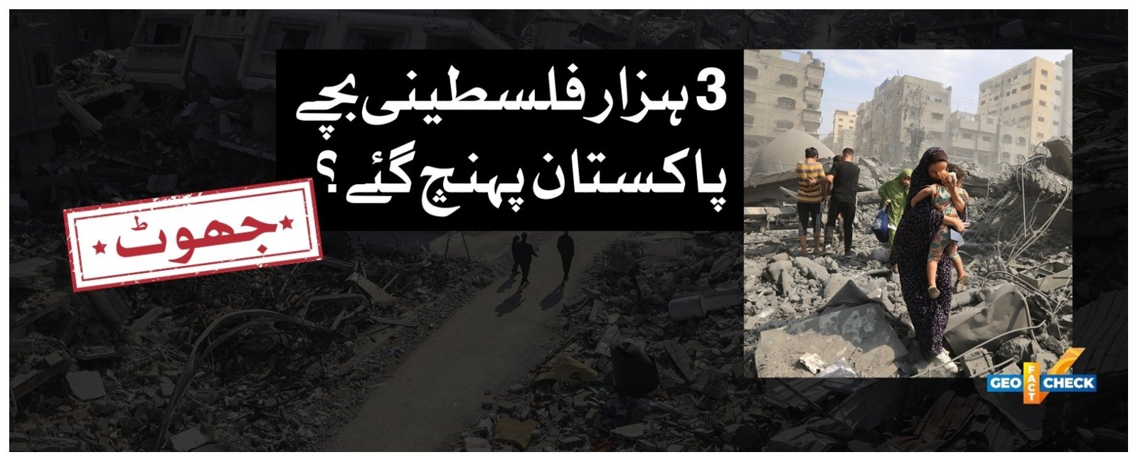 تحقیق کے دوران جیو فیکٹ چیک کو معلوم ہوا کہ سوشل میڈیا پوسٹس میں دیا جانے والا نمبر کسی نے بدنینی کی بنیاد پر شیئر کیاتھا۔ اس کے علاوہ، محکمہ امیگریشن اور پاسپورٹ، وزارت خارجہ اور وفاقی تحقیقاتی ایجنسی (FIA)کے حکام نے سوشل میڈیا پر غزہ سے آنے والے بچوں کی پاکستان میں موجودگی اور ان کو گود لئے جانے کے دعووں کی مکمل تردید کی ہے۔