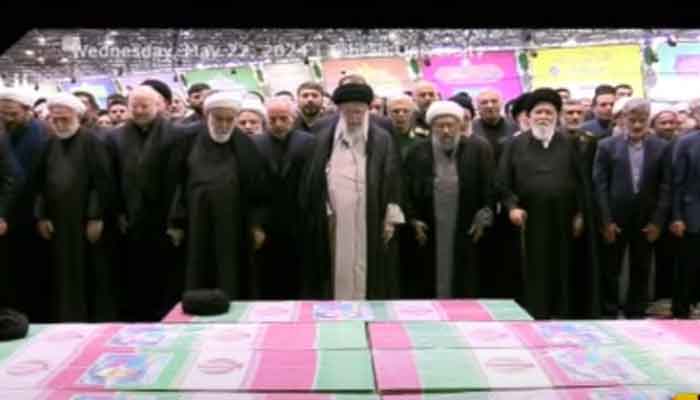 ایران کے سپریم لیڈر آیت اللہ خامنہ ای نے تہران میں ایرانی صدر ابراہیم رئیسی، وزیر خارجہ حسین امیر عبداللہیان اور دیگر کی نماز جنازہ ہ پڑھائی جس میں ہزاروں کی تعداد میں افراد نے شرکت کی۔