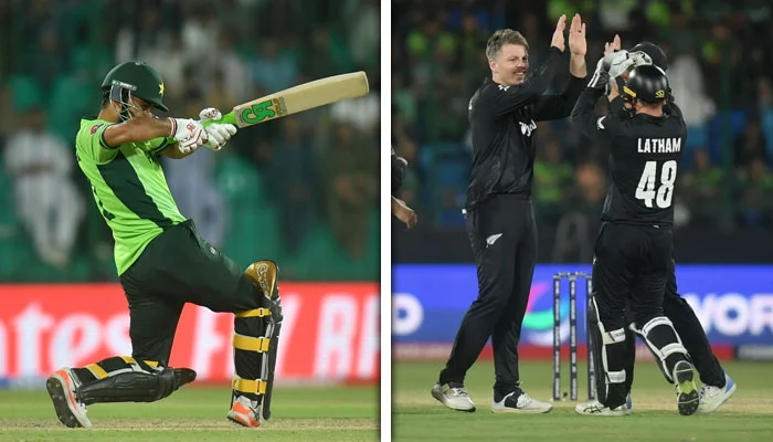 - بابر اعظم نے سب سے زیادہ 64 رنز اسکور کیے لیکن وہ بھی 153 کے مجموعے پر سینٹنر کی گیند پر کیچ دے بیٹھے۔
