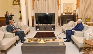 وزیراعظم شہباز شریف نے صدر مملکت آصف علی زرداری سے ایوان صدر میں ملاقات کی، جس میں ملکی سیاسی، اقتصادی اور سیکیورٹی صورتحال پر تفصیلی گفتگو کی گئی۔ اس ملاقات میں نائب وزیر اعظم اسحاق ڈار، وزیر داخلہ محسن نقوی، گورنر خیبر پختونخوا فیصل کریم کنڈی، سابق وزیراعظم پرویز اشرف اور وزیر قومی اسمبلی نوید قمر بھی شریک ہوئے۔
