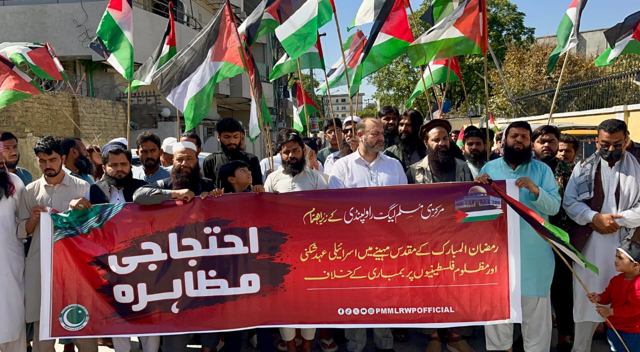 مرکزی مسلم لیگ کا راولپنڈی میں اسرائیلی مظالم کے خلاف احتجاجی مظاہرہ